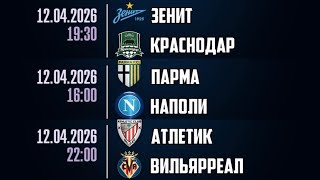 ЗЕНИТ — КРАСНОДАР ПРОГНОЗ ПАРМА — НАПОЛИ ПРОГНОЗЫ НА ФУТБОЛ СЕГОДНЯ 12.04